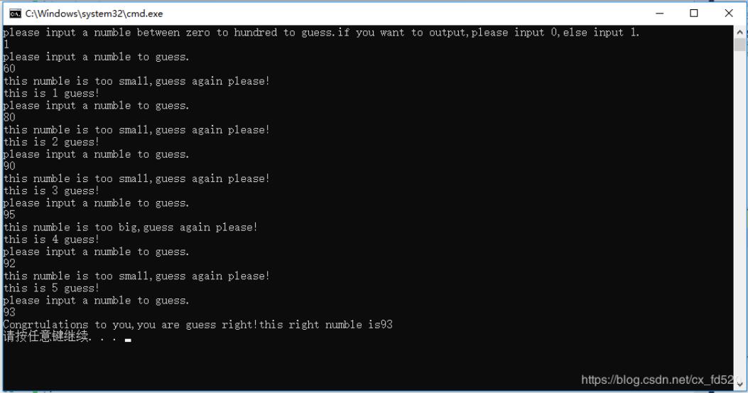 先设一个开关,是否要执行,是就输入“1”,否则的话输入“0”。然后根据这个随机数字guess,用户输入的的值赋值给input,用do…while语句判断guess与input的大小,直到找到input=guess为止。
