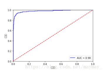 plt.plot(fpr, tpr, 'b', label='AUC = %0.2f' % rocauc)#生成ROC曲线