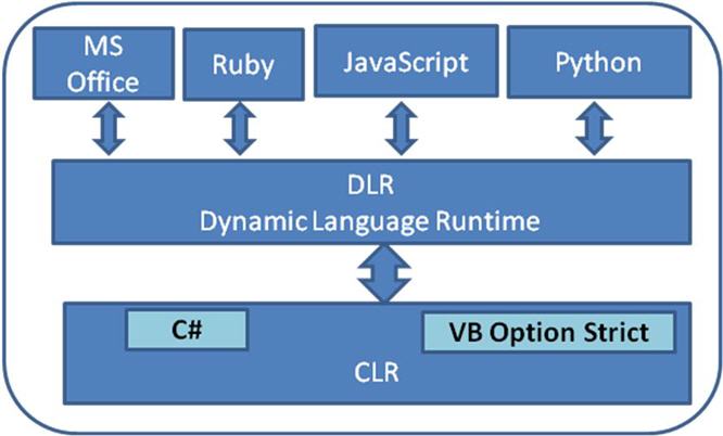 C#4动态功能是Dynamic Language Runtime(动态语言运行时,DLR)的一部分.DLR是添加到CLR的一系列服务,它允许添加动态语言,如Ruby和Python,并使C#具备和这些动态语言相同的某些功能.