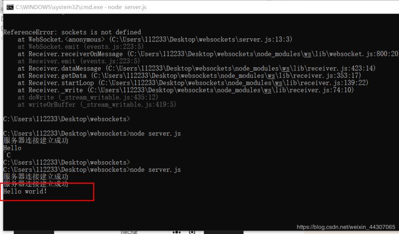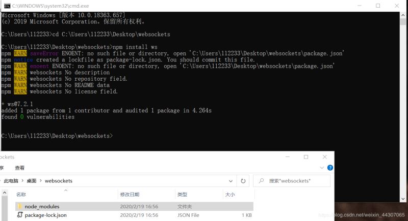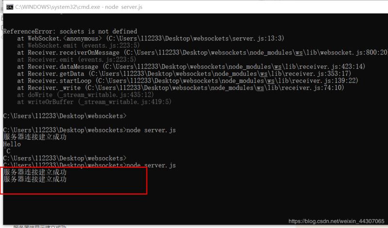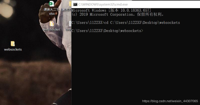 - 输入cd 空格后将websocket直接拖拽到黑框内(或者cd 路径)进入websocket文件夹