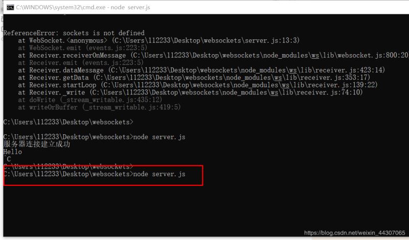 - 在cmd中继续输入:node server.js,运行server.js代码