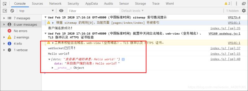 本篇博客介绍微信小程序中webSocket的使用方法,以及如何用局部网络建立webSocket连接,进行客户端与服务器之间的对话: