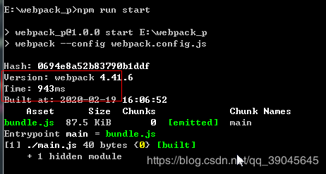 加入一行代码,方便运行命令,"start": "webpack --config webpack.config.js"