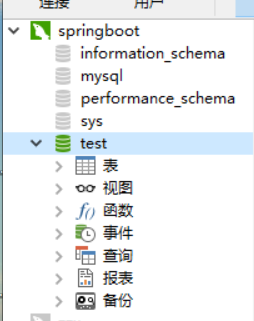 #数据源配置 spring.datasource.type=com.alibaba.druid.pool.DruidDataSource spring.datasource.driverClassName=com.mysql.cj.jdbc.Driver #注意 test是你要连接的数据库的名字 见下图 spring.datasource.url=jdbc:mysql://localhost:3306/test?useSSL=false&useUnicode=true&characterEncoding=utf-8&autoReconnect=true&serverTimezone=Asia/Shanghai spring.datasource.username=root spring.datasource.password=root spring.datasource.initialSize=20 spring.datasource.minIdle=50 spring.datasource.maxActive=500 #上下文配置 server.port=8888 server.servlet.context-path=/kude #配置jpa #帮我们自动生成表结构 spring.jpa.properties.hibernate.hbm2ddl.auto=update spring.jpa.properties.hibernate.dialect=org.hibernate.dialect.MySQL5InnoDBDialect spring.jpa.show-sql= true spring.jpa.properties.hibernate.enable_lazy_load_no_trans=true