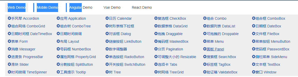 EasyUI是一种基于jQuery、Angular.、Vue和React的用户界面插件集合。