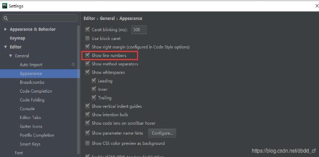 行号显示:此设置后,在你代码中就会显示行号