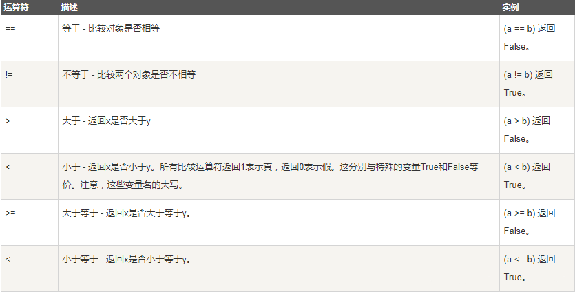 4.3比较(关系)运算符(以下假设变量a为10,变量b为20)