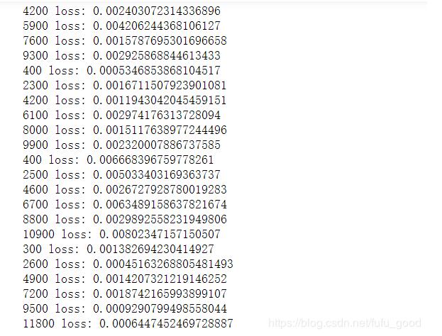 in_num = 784 # 输入维度 h_num = 500 # 隐藏层维度 out_num = 10 # 输出维度 epochs = 30 # 迭代次数 learning_rate = 0.001 USE_CUDA = torch.cuda.is_available() # 定义是否可以使用cuda model = NeuralNet(in_num,h_num,out_num) # 初始化模型 optimizer = optim.Adam(model.parameters(),lr=learning_rate) # 使用Adam loss_fn = nn.CrossEntropyLoss() # 损失函数 for e in range(epochs): for i,data in enumerate(train_dataloader): (images,labels) = data images = images.reshape(-1,28*28) # [batch_size,784] if USE_CUDA: images = images.cuda() # 使用cuda labels = labels.cuda() # 使用cuda y_pred = model(images) # 预测 loss = loss_fn(y_pred,labels) # 计算损失 optimizer.zero_grad() loss.backward() optimizer.step() n = e * i +1 if n % 100 == 0: print(n,'loss:',loss.item())