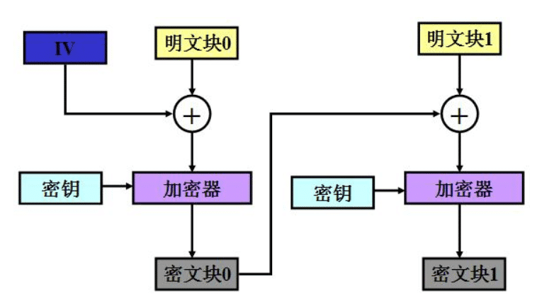 CBC(密文分组链接方式)的实现机制使加密的各段数据之间有了联系。其实现的机理如下: