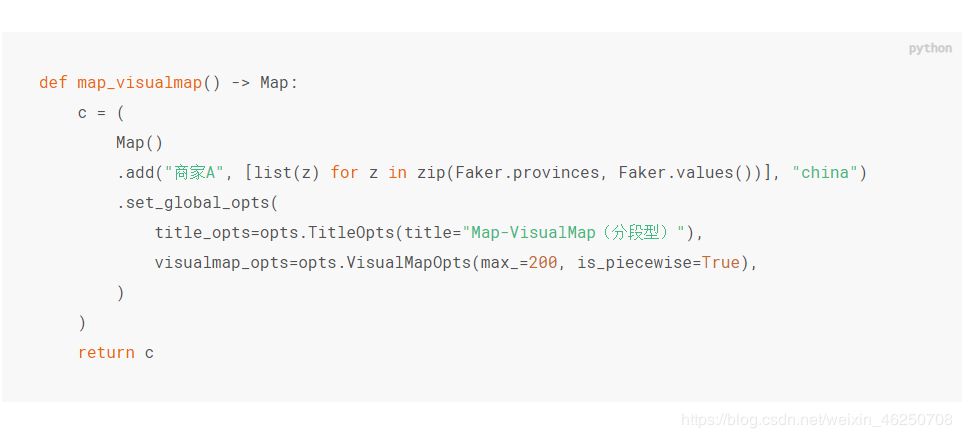 已经爬取到数据了,接下来就是可视化的部分了,用到pyecharts的Map块。