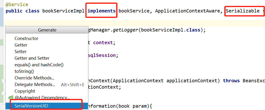 根据类名、接口名、成员方法及属性等来生成一个64位的哈希字段,例如 private static final long serialVersionUID = XXXL;