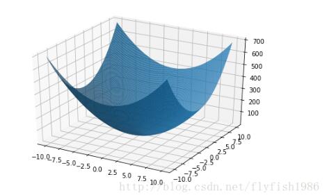 from matplotlib import pyplot as plt import numpy as np from mpl_toolkits.mplot3d import Axes3D fig = plt.figure() ax = Axes3D(fig) X = np.arange(-10, 10, 0.1) Y = np.arange(-10, 10, 0.1) X, Y = np.meshgrid(X, Y) Z = (3*X**2 + 4*Y**2) ax.plot_surface(X, Y, Z, rstride=1, cstride=1) plt.show()