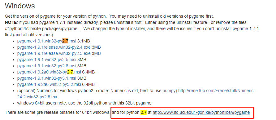 如果使用的是pygame官网,也可以参考下图链接进去下载。
