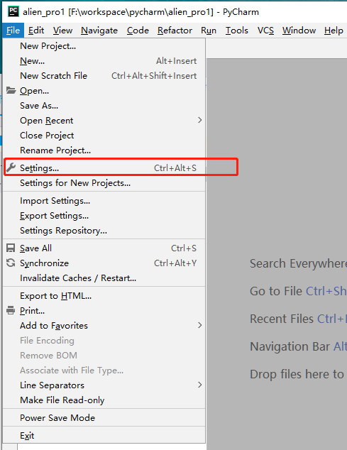 1)如果是对当前项目,选择项目后选择File->Settings