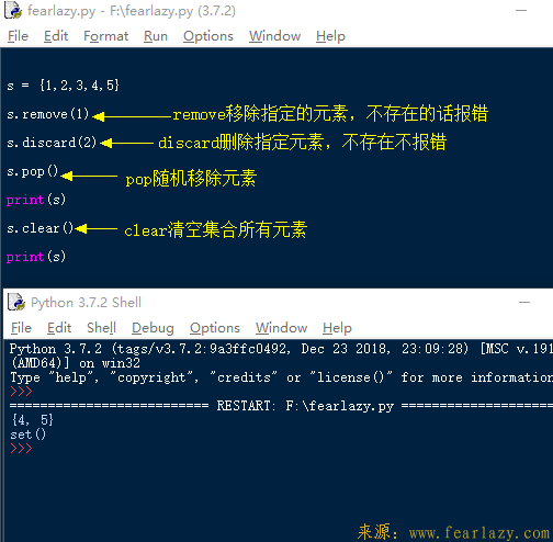 要删除集合中的元素方法还挺多的啊,不过那个pop函数是认真的吗?随机移除元素也太随意了吧...