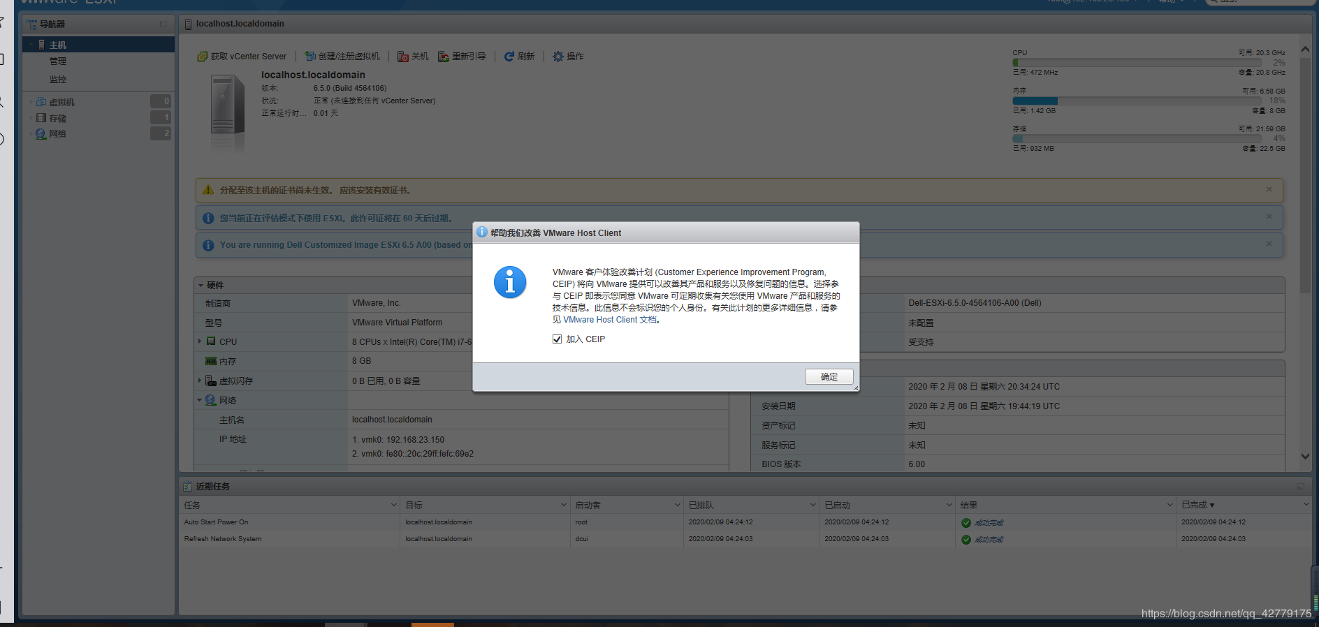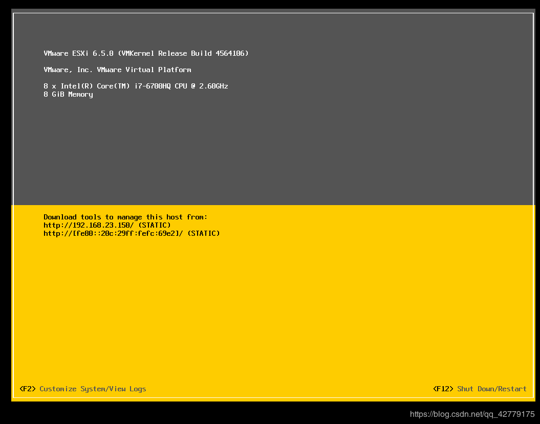 ESXI6.5 安装完之后可以使用Web界面进行访问