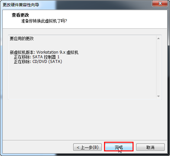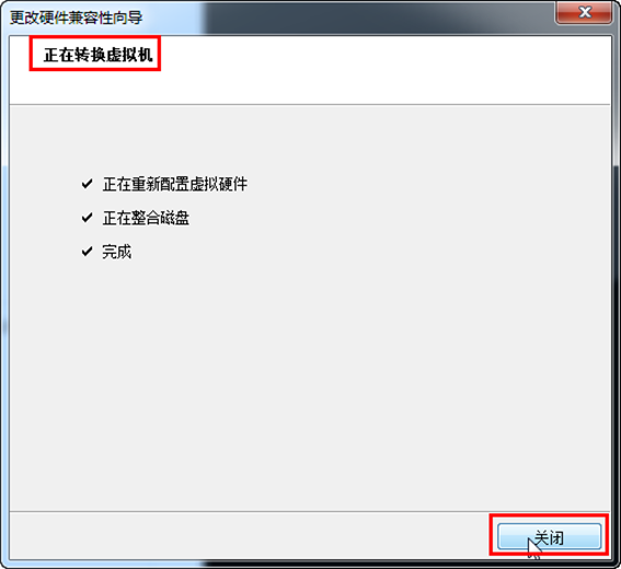 (5)之后会开始转换虚拟机并完成虚拟机硬件的更改,如图5所示。
