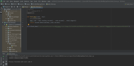 pFunc = PyObject_GetAttrString(pModule, "hash_hmac");//这里是要调用的函数名
