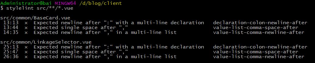 3、同样地,使用stylelint命令即可校验
