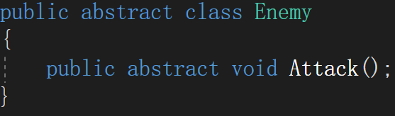 threeEnemy.Attac(); //调用虚方法,用父类来实例化的,所以调用的是父类的Attac方法