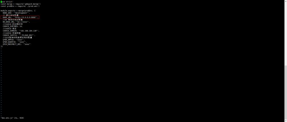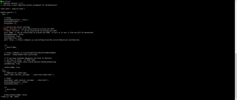 5、修改config/dev.env.js与index.js文件中的BASE_URL 地址为http://0.0.0.0
