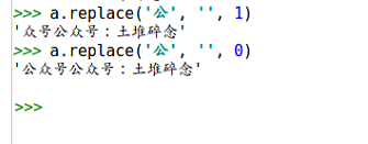 string = '公众号:土堆碎念' list_str = list(string) list_str.pop(1) list_str = ''.join(list_str) print(list_str)