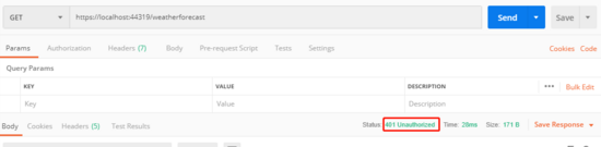 支持我们可以测试验证了,我们可以使用postman来进行http请求,先启动http服务,获取url,先测试一个访问需要授权的接口,但没有携带token信息,返回是401,表示未授权