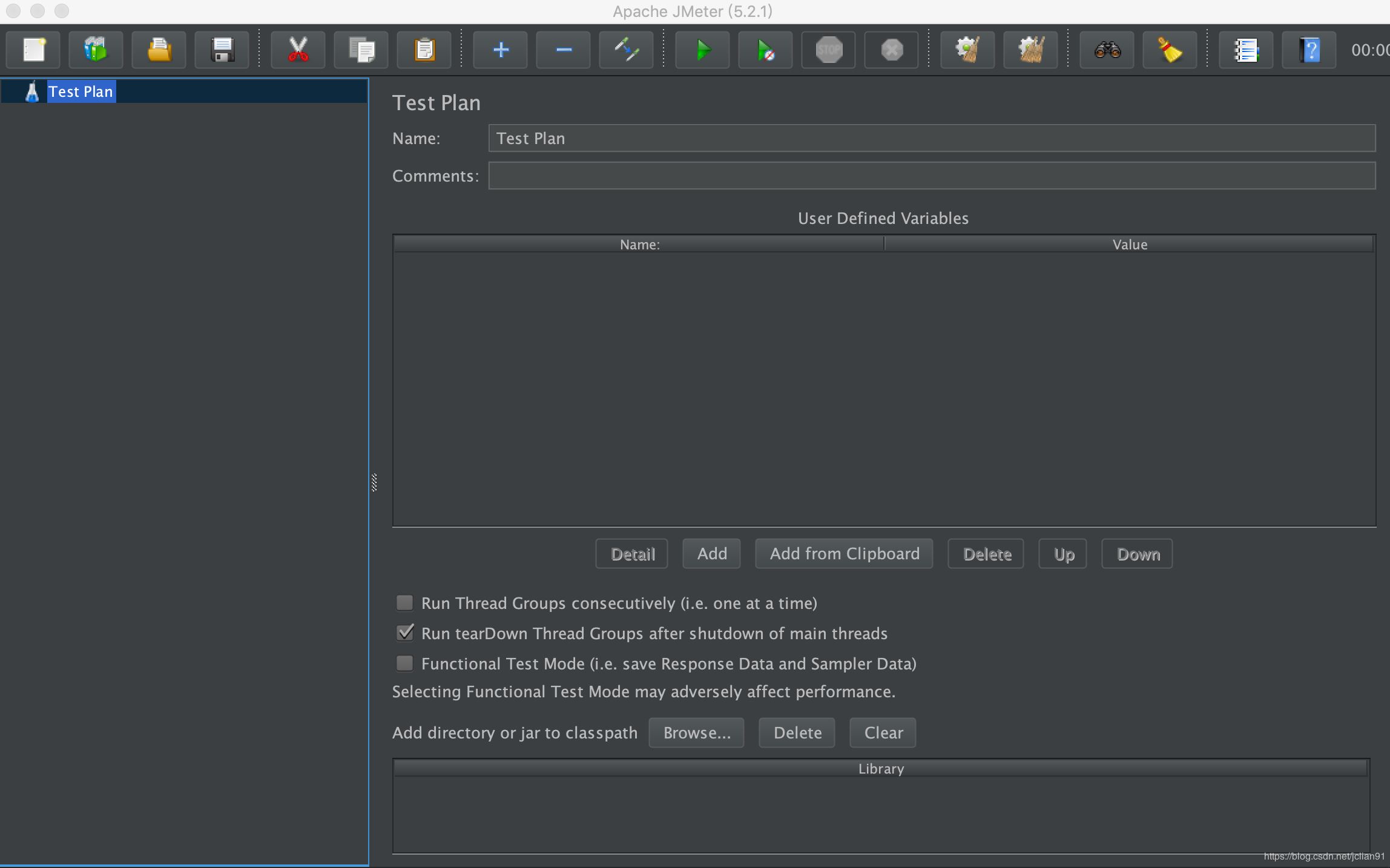 JMeter的下载网址为:https://jmeter.apache.org/download_jmeter.cgi,下载前请先确定电脑中安装了Java,下载完毕后点击bin文件夹下的"meter.bat"(Windows系统)或者"jmeter"可执行文件(Unix系统)即可,界面如下: