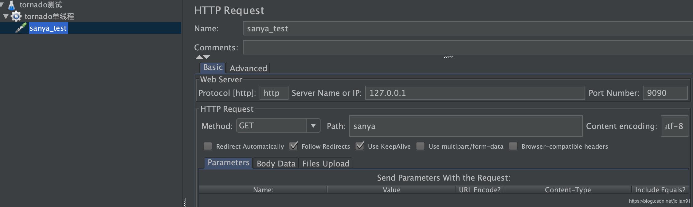 该Thread Group用于测试tornado的sanya这个路径对应的HTTP请求。