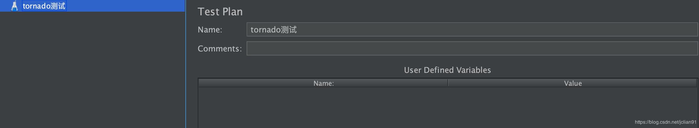 首先新建一个测试计划(Test Plan),取名为tornao测试,如下: