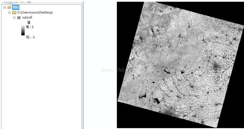 很短的几句代码,可是我却花了很长的时间才写出来,因为array那里的除法运算结果老是不对,正常在-1-1之间的。从别的资料摘来处理NDVI计算的array代码处,出现了很多问题,可能它用了什么优化计算的函数,但是结果不对,果断放弃了。