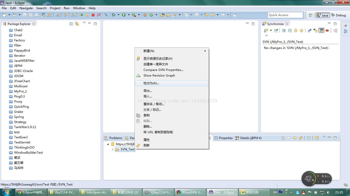2.在SVN资源库窗口的空白位置右键选择新建资源库位置