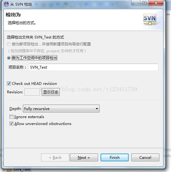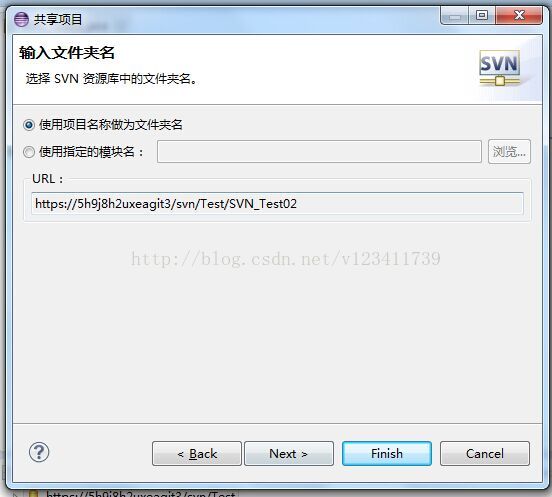 10.使用项目名称作为文件夹名 --> 点击Finish --> 输入用户名和密码(此步不一定每个人都有)