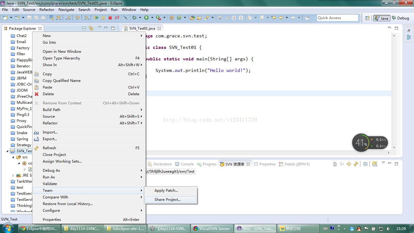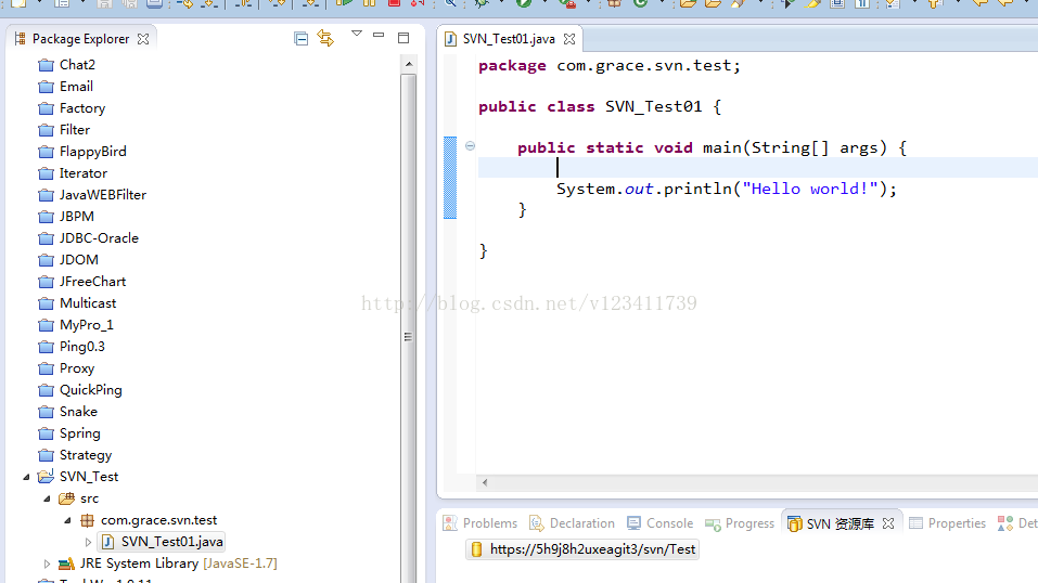 具体操作:打开Eclipse --> Help --> Install New Software --> 点击add按钮,输入下载地址:http://subclipse.tigris.org/update_1.10.x,点击OK
