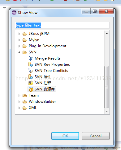 4.资源库导入成功,SVN资源库视图下出现导入的资源库