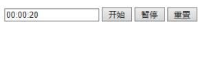 <input type="text" id="timetext" value="00:00:00" readonly> <button type="button" onclick="start()">开始</button> <button type="button" onclick="stop()">暂停</button> <button type="button" onclick="Reset()">重置</button>