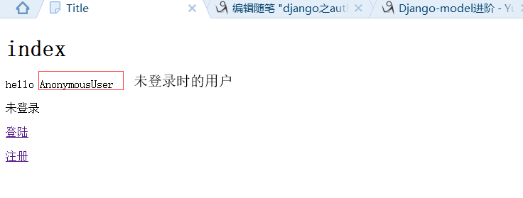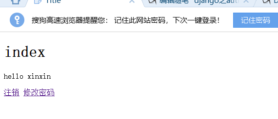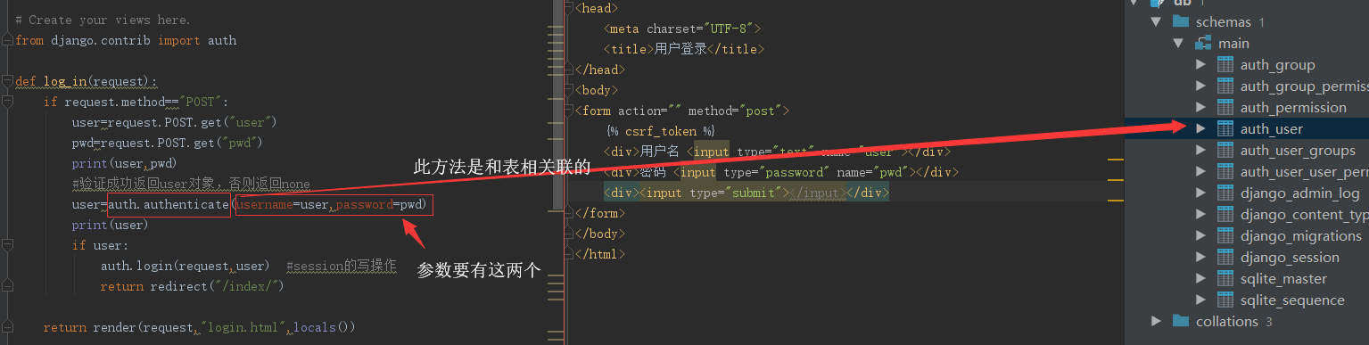 验证用户登录:user = authenticate(username='someone',password='somepassword')验证成功返回user对象,否则返回none