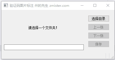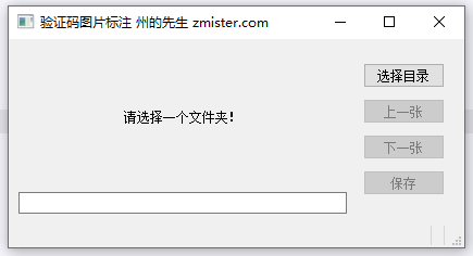 class ImgTag(QtWidgets.QMainWindow): def __init__(self): super().__init__() self.setWindowTitle("验证码图片标注 州的先生 zmister.com") # 主控件和主控件布局 self.main_widget = QtWidgets.QWidget() self.main_layout = QtWidgets.QGridLayout() self.main_widget.setLayout(self.main_layout) # 图像展示控件 self.img_widget = QtWidgets.QWidget() self.img_layout = QtWidgets.QHBoxLayout() self.img_widget.setLayout(self.img_layout) # 标签占位 self.img_view = QtWidgets.QLabel("请选择一个文件夹!") self.img_view.setAlignment(QtCore.Qt.AlignCenter) self.img_layout.addWidget(self.img_view) # 图像标注控件 self.img_input = QtWidgets.QLineEdit() # 控制按钮控件 self.opera_widget = QtWidgets.QWidget() self.opera_layout = QtWidgets.QVBoxLayout() self.opera_widget.setLayout(self.opera_layout) # 各个按钮 self.select_img_btn = QtWidgets.QPushButton("选择目录") self.previous_img_btn = QtWidgets.QPushButton("上一张") self.previous_img_btn.setEnabled(False) self.next_img_btn = QtWidgets.QPushButton("下一张") self.next_img_btn.setEnabled(False) self.save_img_btn = QtWidgets.QPushButton("保存") self.save_img_btn.setEnabled(False) # 添加按钮到布局 self.opera_layout.addWidget(self.select_img_btn) self.opera_layout.addWidget(self.previous_img_btn) self.opera_layout.addWidget(self.next_img_btn) self.opera_layout.addWidget(self.save_img_btn) # 将控件添加到主控件布局层 self.main_layout.addWidget(self.img_widget,0,0,4,4) self.main_layout.addWidget(self.opera_widget,0,4,5,1) self.main_layout.addWidget(self.img_input,4,0,1,4) # 状态栏 self.img_total_current_label = QtWidgets.QLabel() self.img_total_label = QtWidgets.QLabel() self.statusBar().addPermanentWidget(self.img_total_current_label) self.statusBar().addPermanentWidget(self.img_total_label, stretch=0) # 在状态栏添加永久控件 # 设置UI界面核心控件 self.setCentralWidget(self.main_widget)