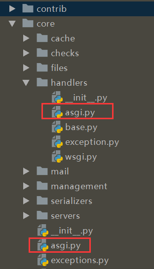 一路点点点,翻了个遍,发现Django3.0与之前的2.2关于ASGI的区别就是多了下面两个文件: