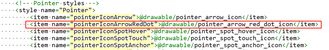 其中pointer_spot_touch_icon.xml 需要声明为 pointer-icon :