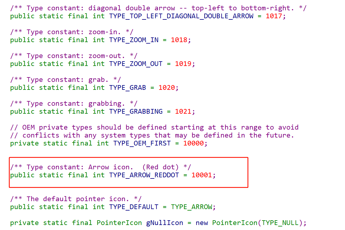 POINTER_ICON_STYLE_REDDOT = 10001, //增加自定义样式的枚举定义,与上面 PointerIcon.java 中的变量对应