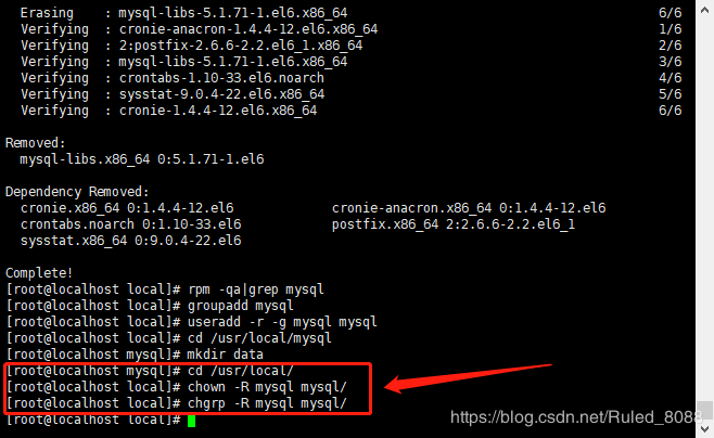 创建用户:useradd -r -g mysql mysql