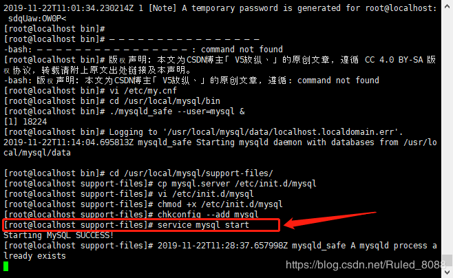 cd /usr/local/mysql/support-files/ cp mysql.server /etc/init.d/mysql vi /etc/init.d/mysql