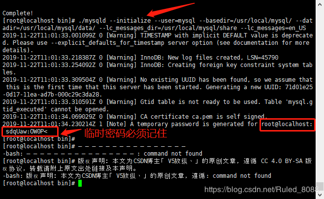 记住生成的mysql临时密码
