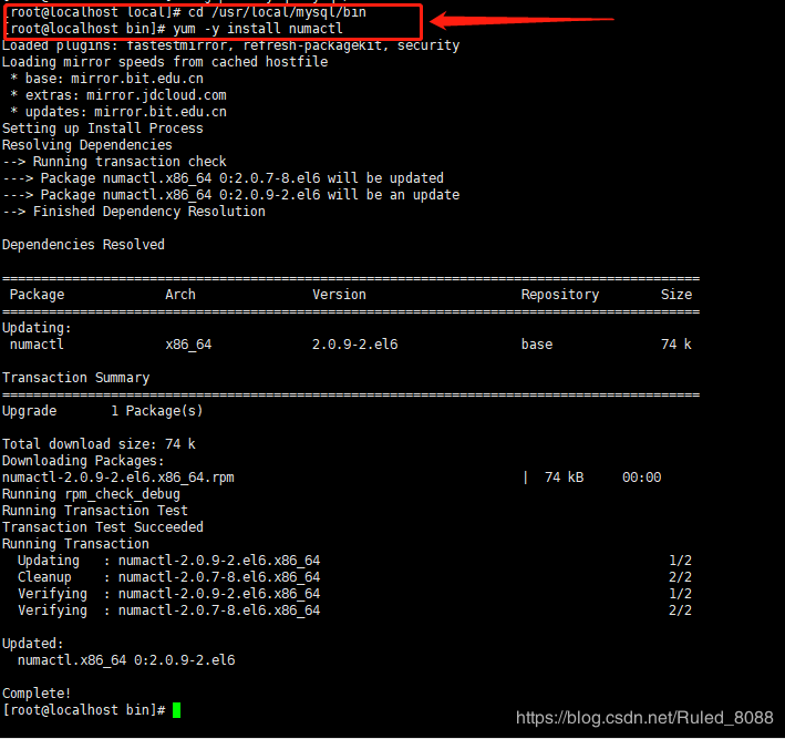 cd /usr/local/mysql/bin yum -y install numactl
