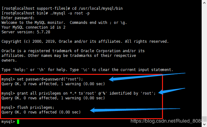 修改密码:set password=password("root");将密码更改为root