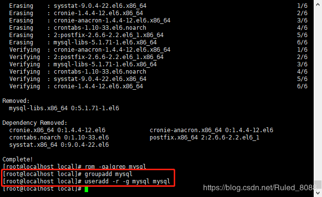 创建用户组:groupadd mysql