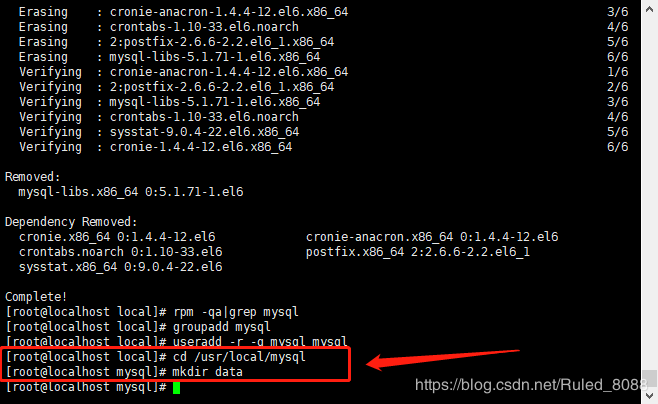 cd /usr/local/mysql mkdir data