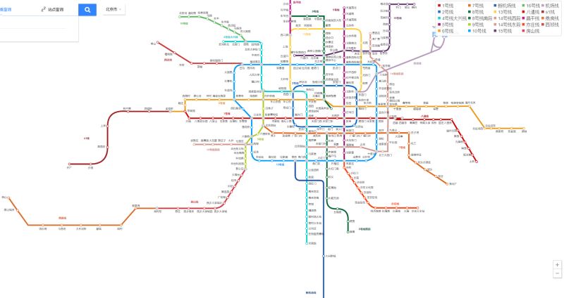 1.按照不同颜色显示地铁各线路,显示对应站点。