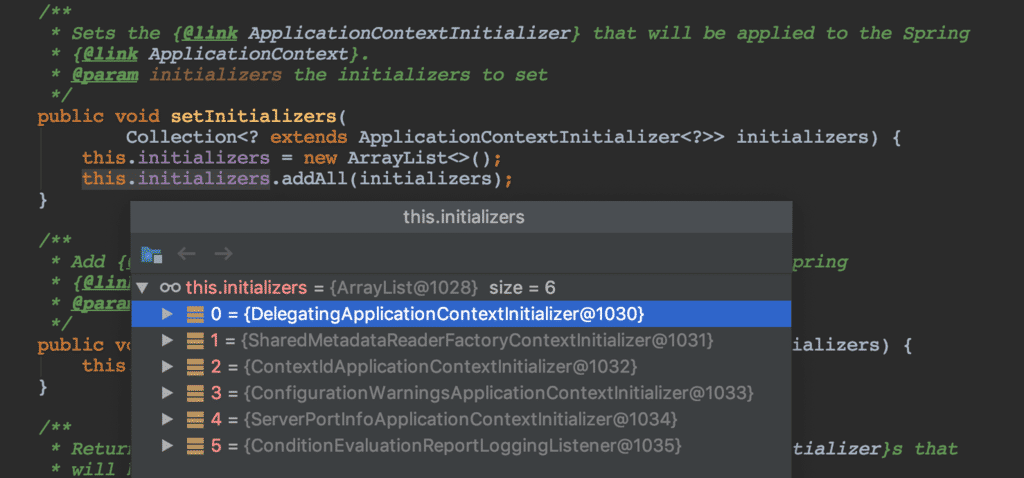 setInitializers((Collection) getSpringFactoriesInstances( ApplicationContextInitializer.class));